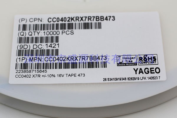 產品品牌:YAGEO/國巨陶瓷電容
